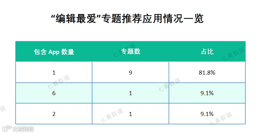 如果说“编辑最爱”对于游戏的推荐有固定日期,那么对于应用的推荐相对就薄弱一些,从 1 月至 4 月,共推荐了 11 个只包含应用的专题,其中有 9 个专题只包含 1 款应用,1 个专题包含 6 款,1 个专题包含 2 款。
