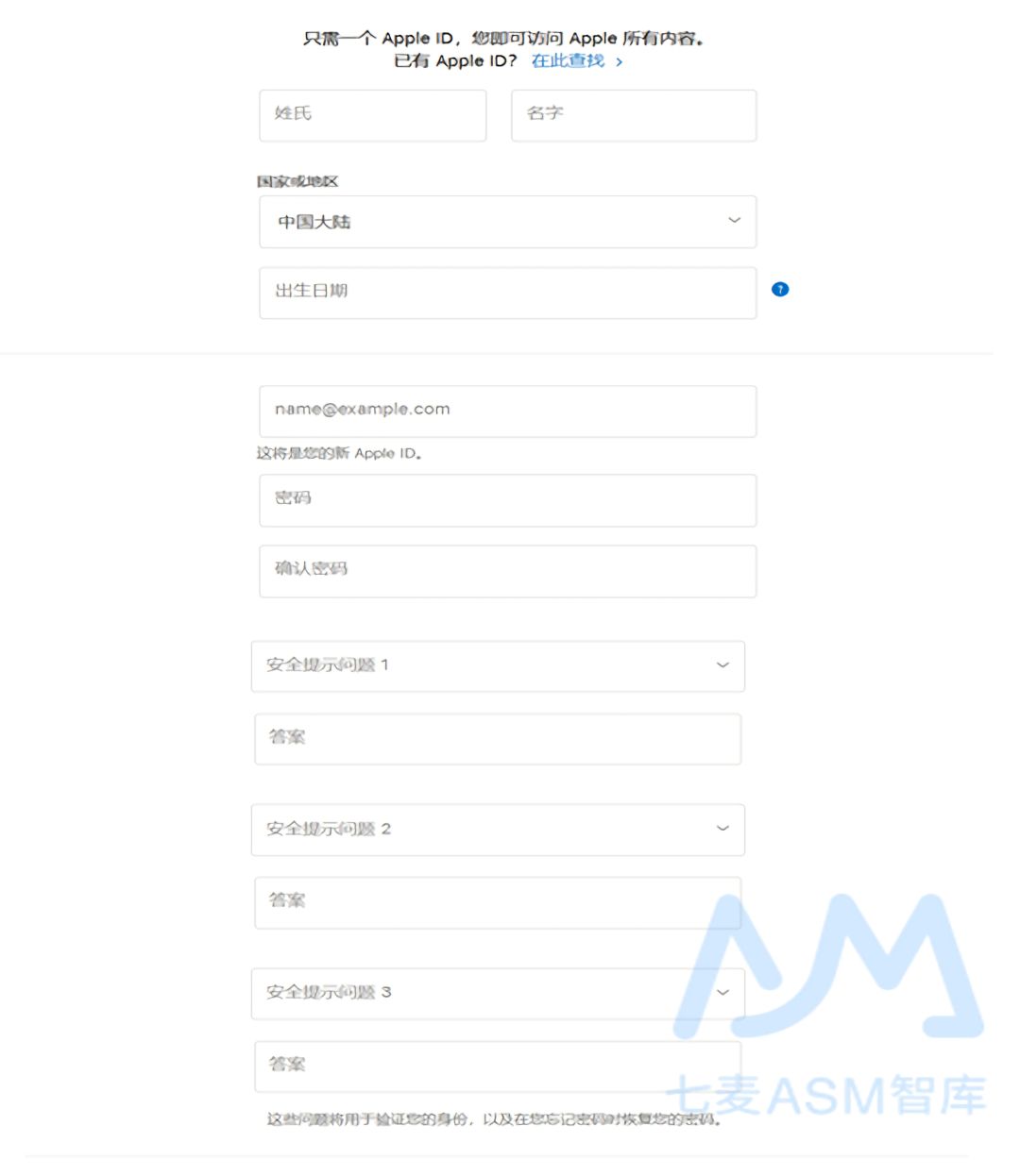 如果之前没有 Apple ID 的话需要先注册,注册的流程很简单,只需要填写一些基本信息即可。