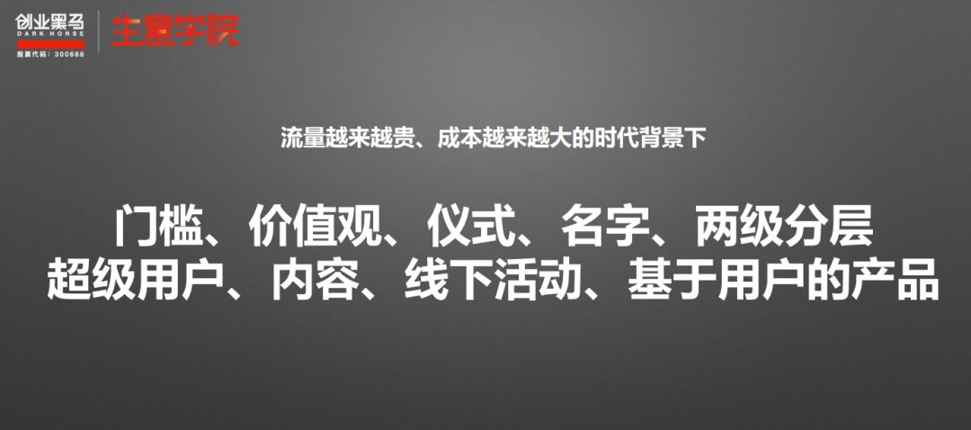 我今天重点讲四个关键点:门槛、二级分层、线下活动、超级用户。