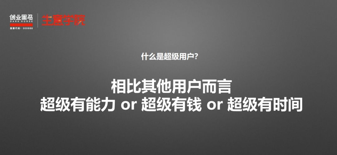 什么叫超级用户?超级用户是相比其他用户而言,超级有能力,或者超级有钱,或者超级有时间。为什么很多的企业在争抢宝妈这个人群,因为超级有时间。还有的超级用户能帮你在三四五线城市获取资源开拓市场,这叫超级有能力。有的企业的普通用户消费完你的产品就走了,而超级用户会问一句“这个事,我可以做吗?”