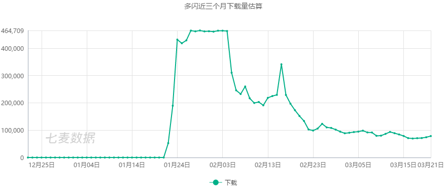 三次爆发增长,三次重要时间节点,背后是多闪“猛烧钱”的结果。元宵热潮之后,多闪下载量趋于平稳,近一周内日均下载量不足 10 万。