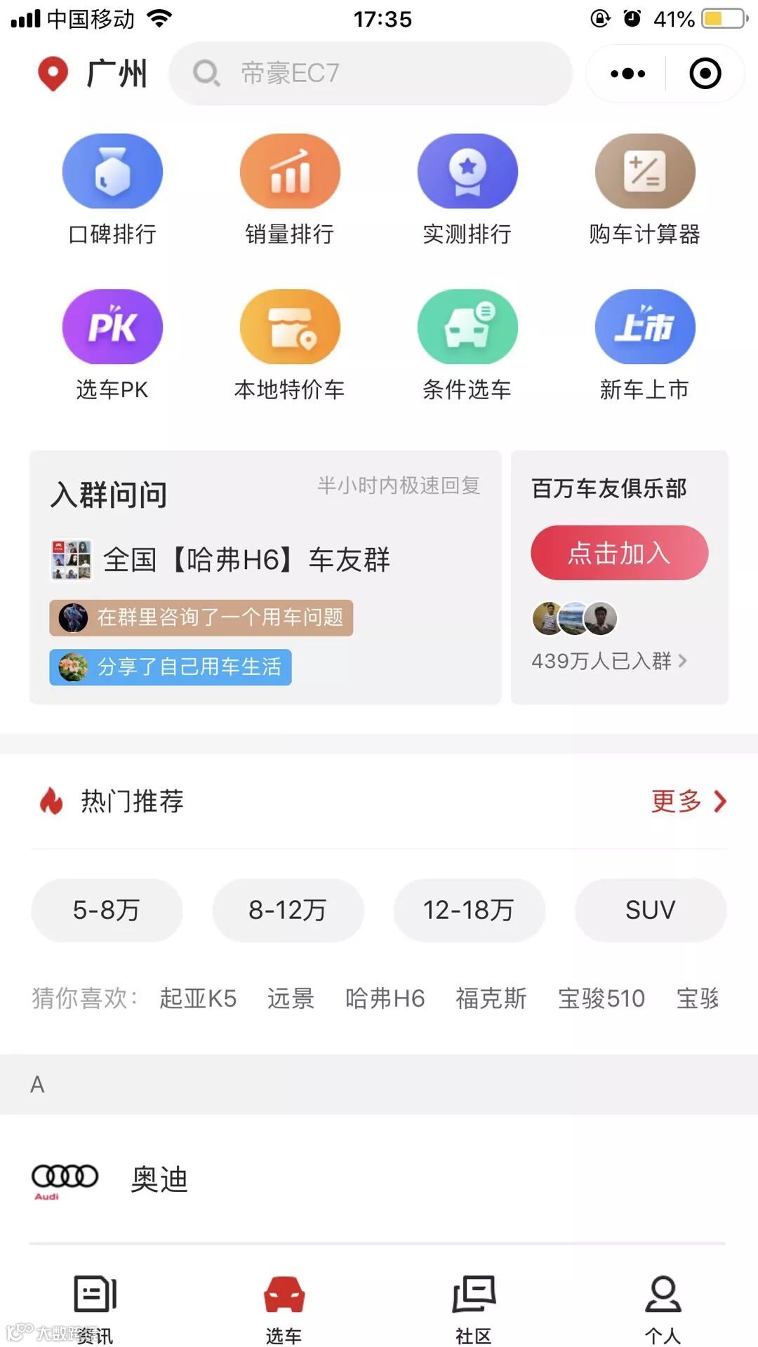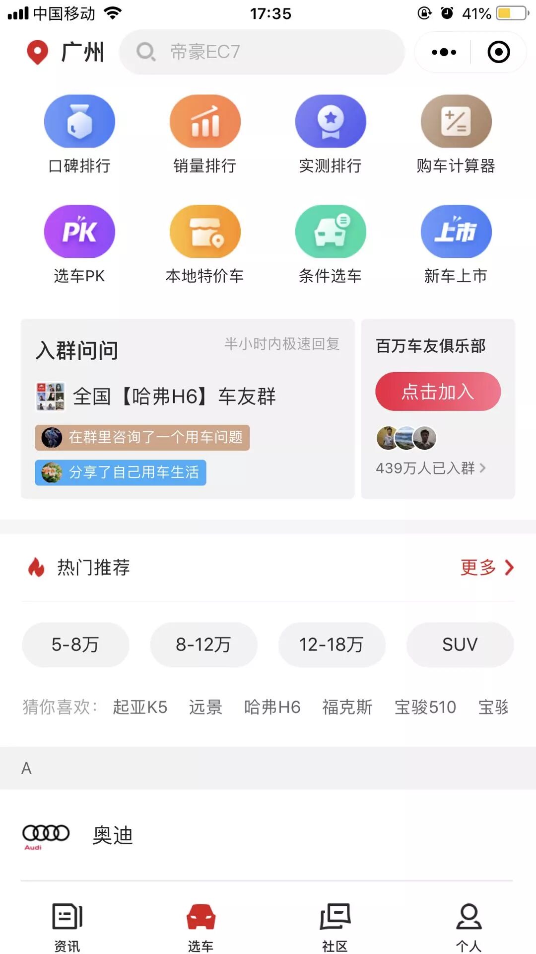 这类人群对汽车的专业知识可能不够了解,因此平台提供知识问答以及车友俱乐部进行沟通交流。下沉人群容易跟风 ,因此针对口碑和销量进行排行,利于车主选择。