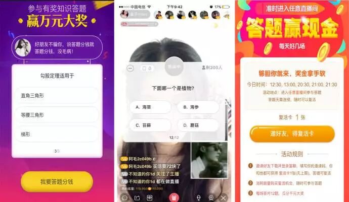 1 月 3 日,随着王思聪一条“撒币答题赢奖金”的微博登上热搜,今日头条、花椒直播、抖音……众多互联网公司纷纷入局,想要蹭一蹭直播答题的热度。