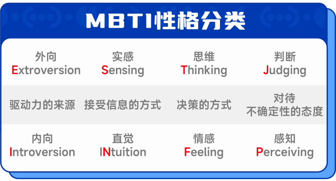 MBTI 性格认知,英文全称为“Myers Briggs Type lndicator”,来源于著名心理学家卡尔 · 荣格先生关于心理类型的理论划分。