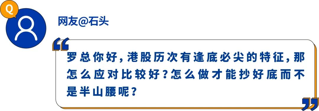 罗佳明:港股市场的底,往往是伴随融资盘的“杠杆断裂”后的被迫卖出,或者是机构集中的止损,所以往往是会出现尖底的特征。实际上我们也无法准确预料市场是底或者半山腰,过去两年我们也往往把半山腰当成了底,吃过苦头。可以分享的一点经验就是,如果拉长来看,在港股全市场不分板块的连续下跌,伴随成交量在底部放大,往往可以确认阶段性的底部。