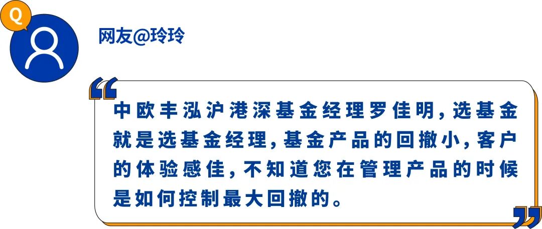 罗佳明:坦白说,我们在过去两年并没有很好地做到控制回撤,这里面有很多值得反思和总结的,这也给我们的持有人带来相当的困扰,为此我们是深感歉意的。我们一向没有把控制回撤当成投资的目标之一,我们的目标只是用合理估值买入优秀的企业,通过行业分散平抑波动。无奈的是,最近两年港股市场的走势有些过于极端,远超出我们的预期。但如果换个角度来看,我们用更低的价格,收集了一篮子优秀公司的股权。待经济周期向上复苏之时,我们相信这些公司可以给股东带来超越行业的回报。