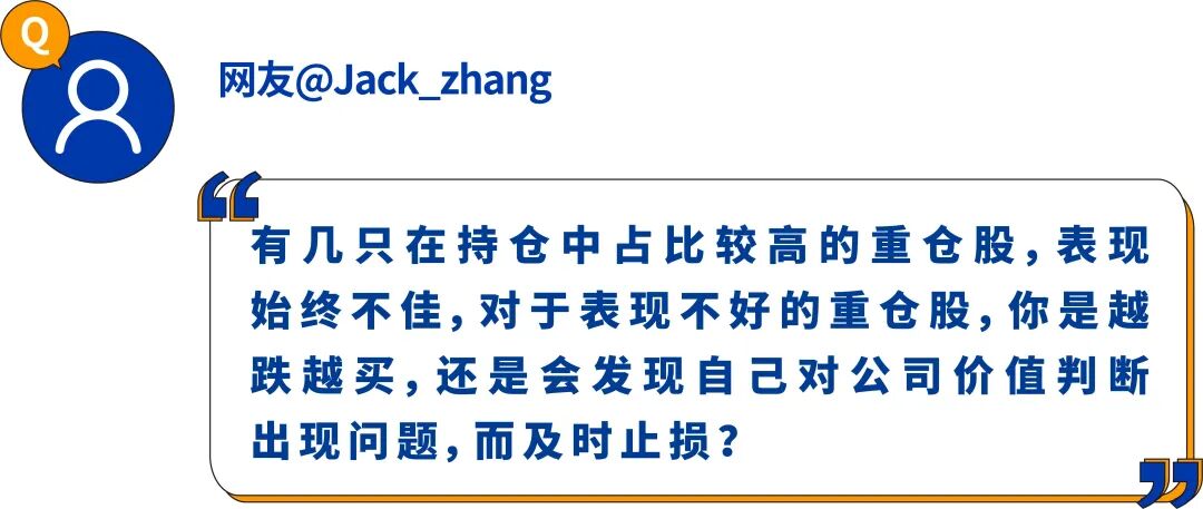罗佳明:这确实是我们面对的问题,我们一直在不定期地再评估自己的持仓,坚持只投资细分行业内最优秀的管理层和好生意。但有时候也不能排除自己有看错的可能。如果经过反复评估都没发现公司做了什么错误决策,而目前的问题仅是暂时的,那我们会选择越跌越买。如果我们发现自己看错了,或者是大环境变化了,抑或是行业竞争格局急剧恶化了,更甚至出现了新技术颠覆了该生意模式,无论是哪一种,我们都会及时止损,及时认错往往是付出最小代价的选项。