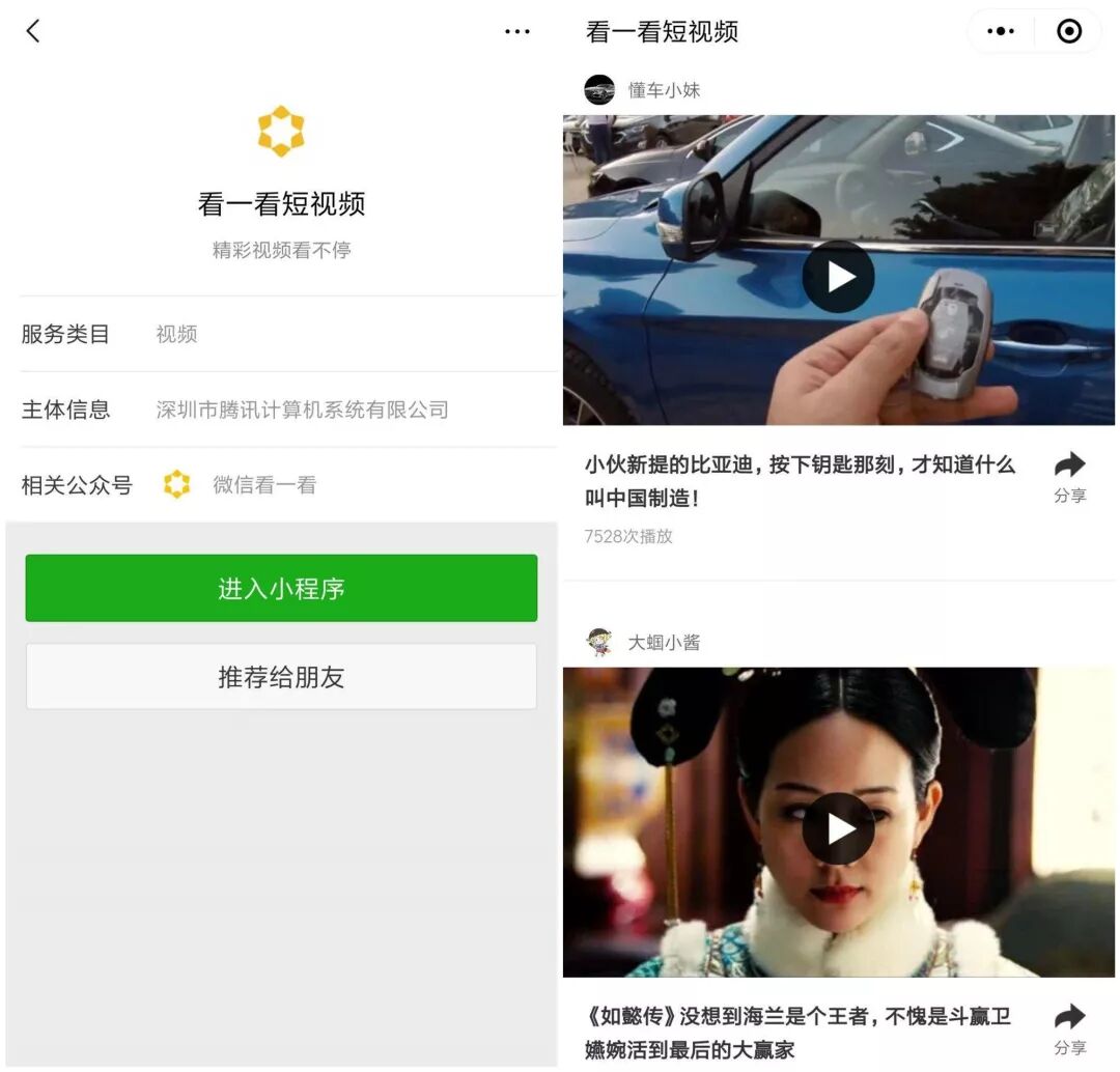9 月 21 号消息,微信上线「看一看短视频」小程序,关联公众号「微信看一看」。用户可下滑「看一看短视频」页面来刷新更多视频内容。