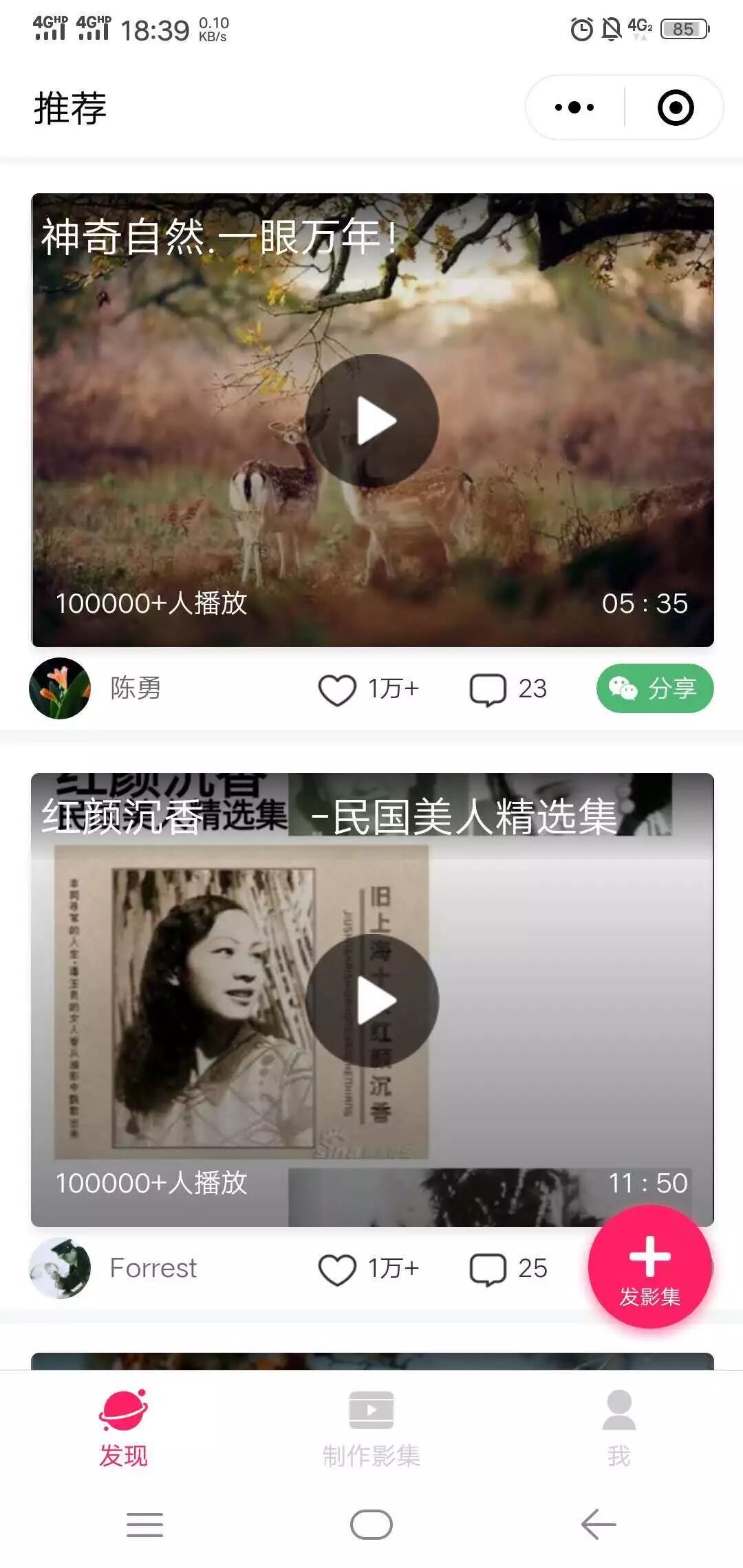 制作影集中,可选的动画和音乐种类都很多,而且当用户对所做视频不甚满意时,还可在小程序内进行修改。不过,在用户分享视频时,只能将整个小程序发出去,对方不能一键打开制作的视频。这可能是这款小程序最大的一个缺点吧!