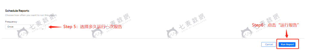 4.从报告构建器工具下方的菜单中,选择报告运行频率以及开始/结束日期,并点击“运行报告”按钮。