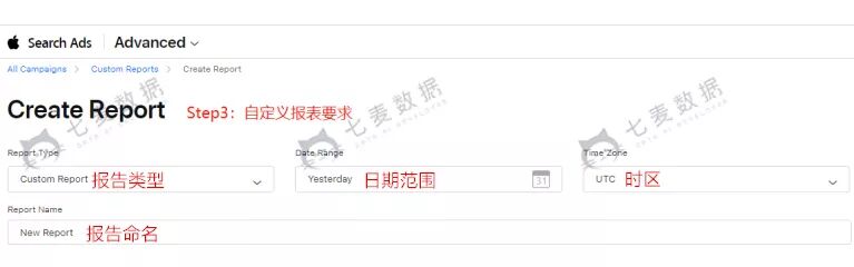 2.选择完毕后,在菜单中确定报告统计的日期范围和时区,并为报告命名。