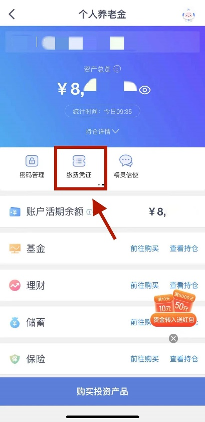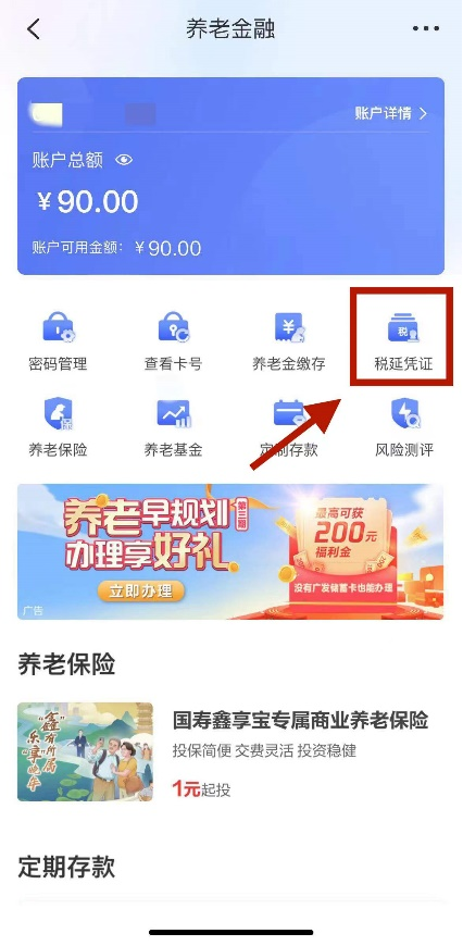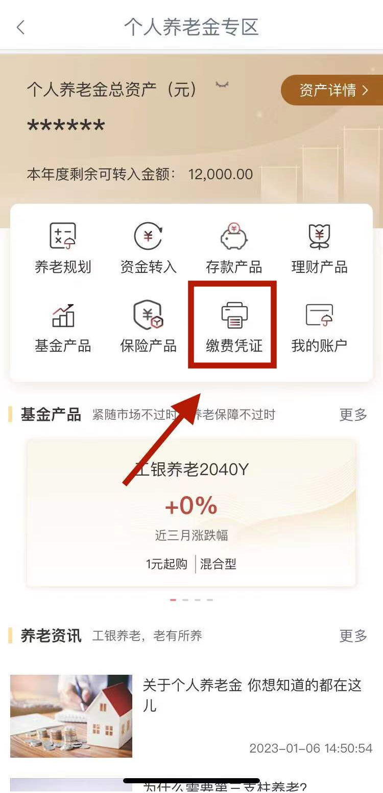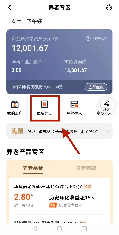 2. 在【个人养老金专区】找到【缴费凭证】或【税延凭证】