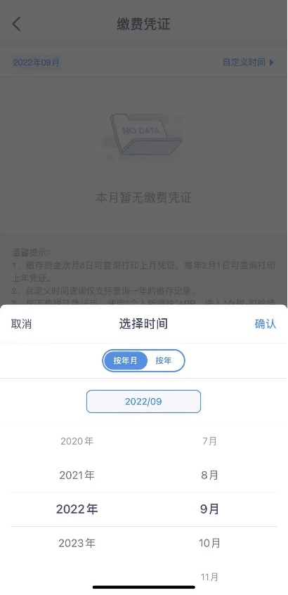 3. 根据自己缴费的时间按年度或月度下载凭证