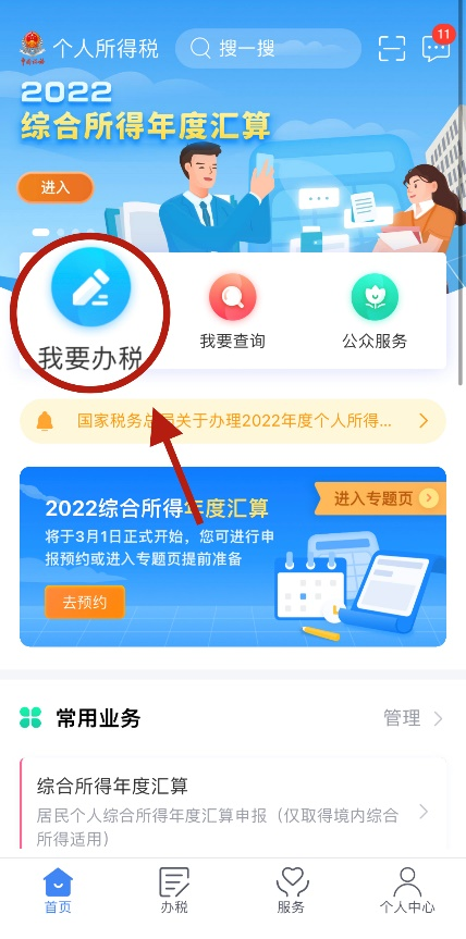 01.打开个人所得税APP,登陆个人账户,首页点击【我要办税】