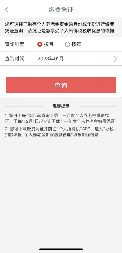 【首页】-【个人养老金】-【养老小工具】-【缴费凭证】-选择【年度/月度凭证】及时间区间