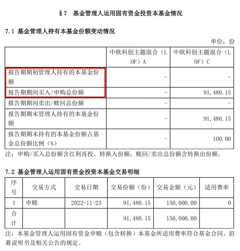牛欧欧:后台有小伙伴发来一张截图,问欧欧这“报告期期初、期末管理人持有的本基金份额”是不是就是“自购”?
