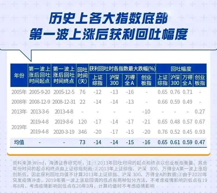 与此同时,海通证券也指出,“倒春寒”并不是什么新鲜事,历史上各大指数在底部第一波爬升后,都会出现阶段性调整,但从幅度来看并不算大。