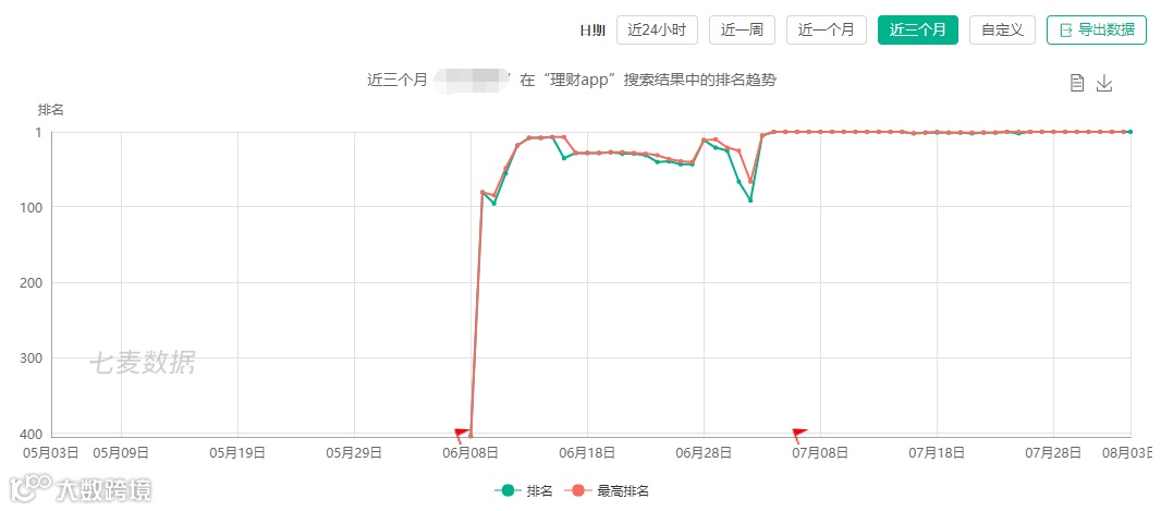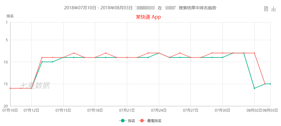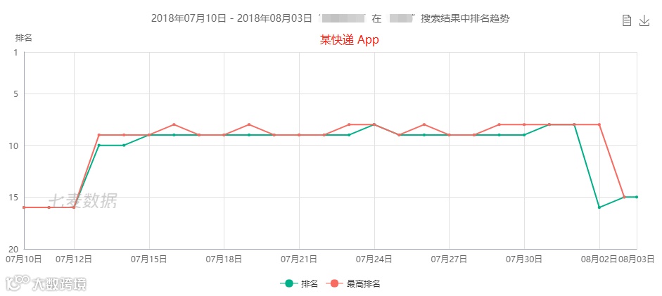 7 月 13 日,在一些关键词搜索结果下的 App 排名都出现大幅度下降或上升,而在 8 月2日,这些 App 的排名再次发生异常变动。