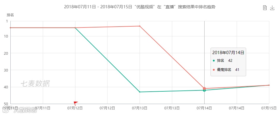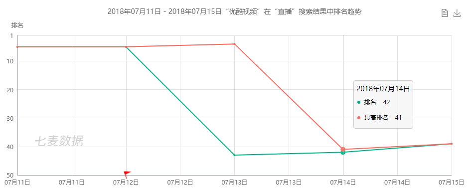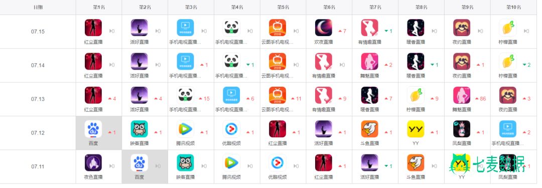 以“直播”为例,调整前稳定在 Top5 的“百度”、“腾讯视频”、“优酷视频”,7 月 13 日,调整后排名都跌出 20 名开外。这几个产品的业务功能都与“直播”相关性不大。
