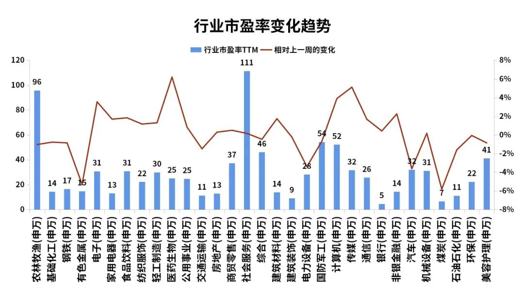 社会服务、农林牧渔和汽车处于相对高位;煤炭、银行和交通运输行业处于低位