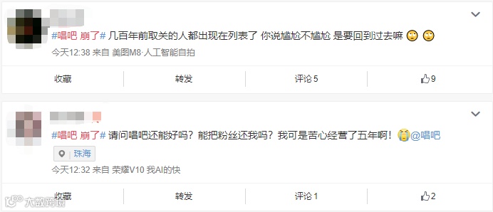 6 月 25 日,不少用户在微博上反映自己的唱吧账号无故大片掉粉还自动关注以前取关的人。