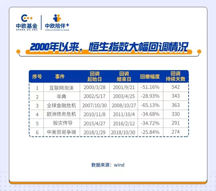 2022年,复杂的宏观环境成为了压制权益市场的主要因素,港股的表现明显弱于全球主流股指。事实上,从2000年至今,类似的大幅回撤港股也经历了数次: