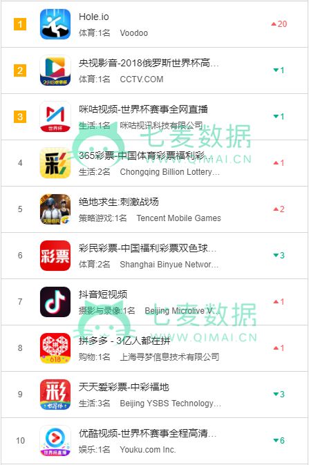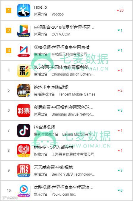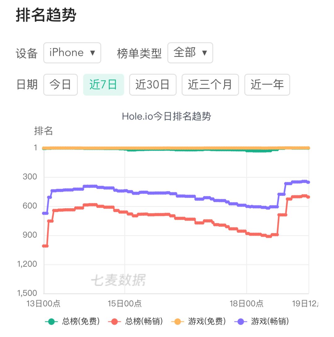 在 6 月 18 日,一款小游戏「Hole.io」横空上榜,在被世界杯话题所占据榜单上,「Hole.io」登顶首位。