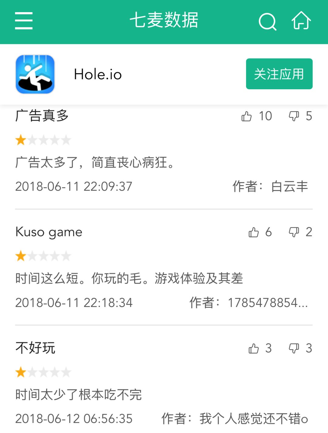 抖音带火的游戏不计其数,而这次休闲类游戏「Hole.io」同样以简单易操作、刺激性强而被带火。而从运营的角度上来讲,新产品全球发布受到多地用户青睐;魔性广告词朗朗上口;借势抖音强势上榜成功刷脸……这样的运营策略在游戏上线之后效果还是很好的,所以说小游戏并不是不受关注,小产品并不是没有成为爆款的机会,而是要借助当下能够投放的平台,一击即中。