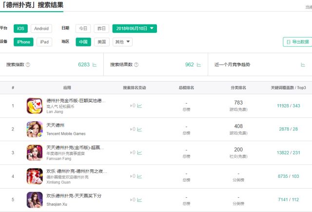 而这条“封禁令”就于 6 月 1 日出台。虽已过去十天,但是各大应用平台并没有整治这方面的迹象,在网站上搜索“德州扑克”,仍然可以看见相关 App 活跃在平台上,并且和 5 月相差无几。