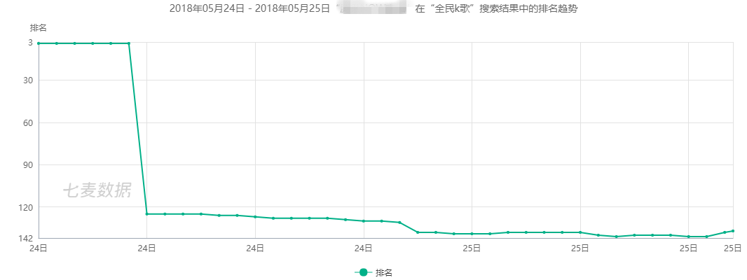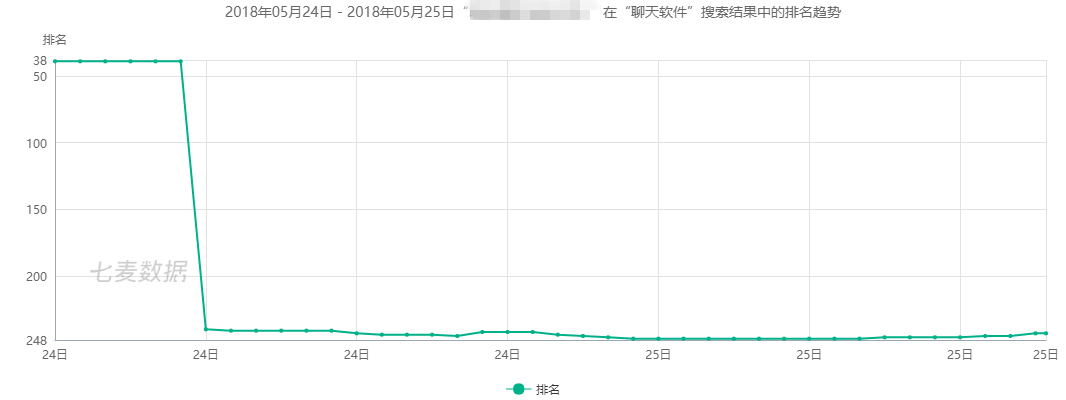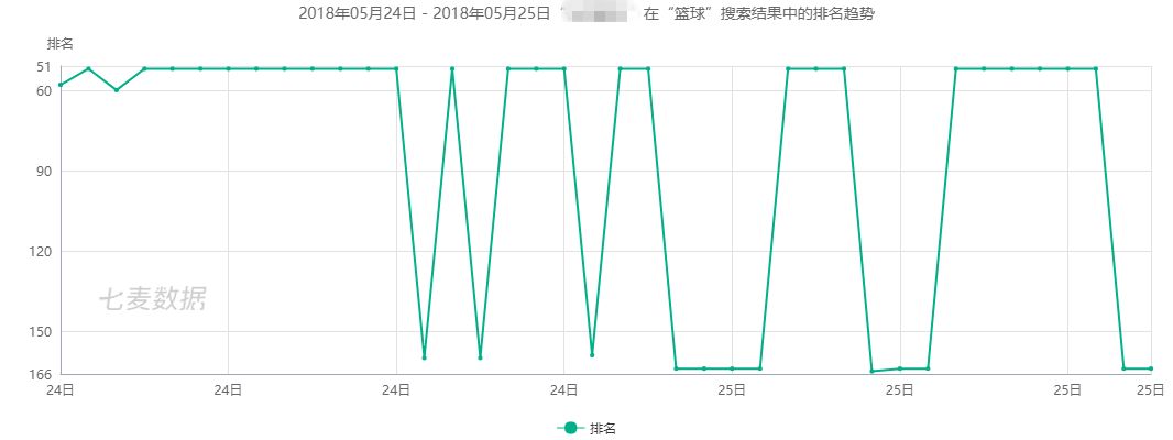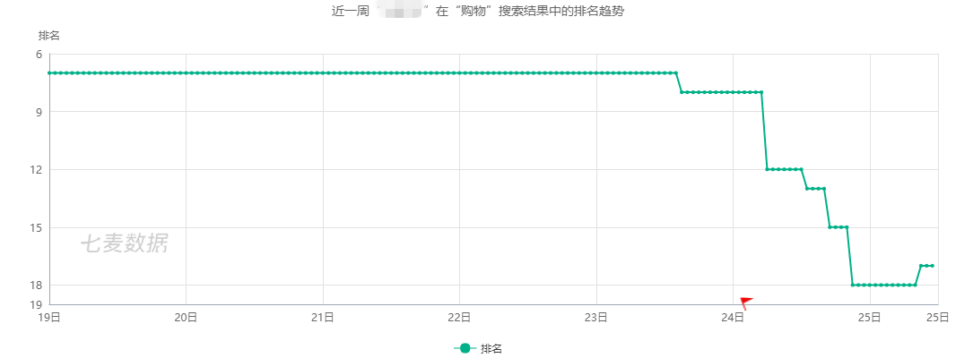 可以从图中看到产品在关键词下的排名有明显下降趋势,而时间点均为 24 日。