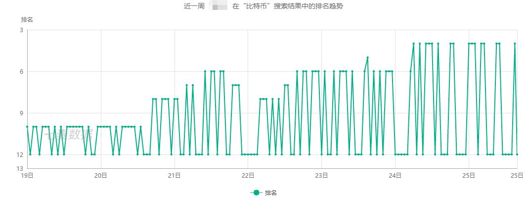 除了特殊节点的波动外,七麦研究院做了进一步查看,针对近期关注度比较高的关键词进行数据对比。发现,在区块链产品中的“比特币”等关键词在搜索排名中波动幅度明显增强。