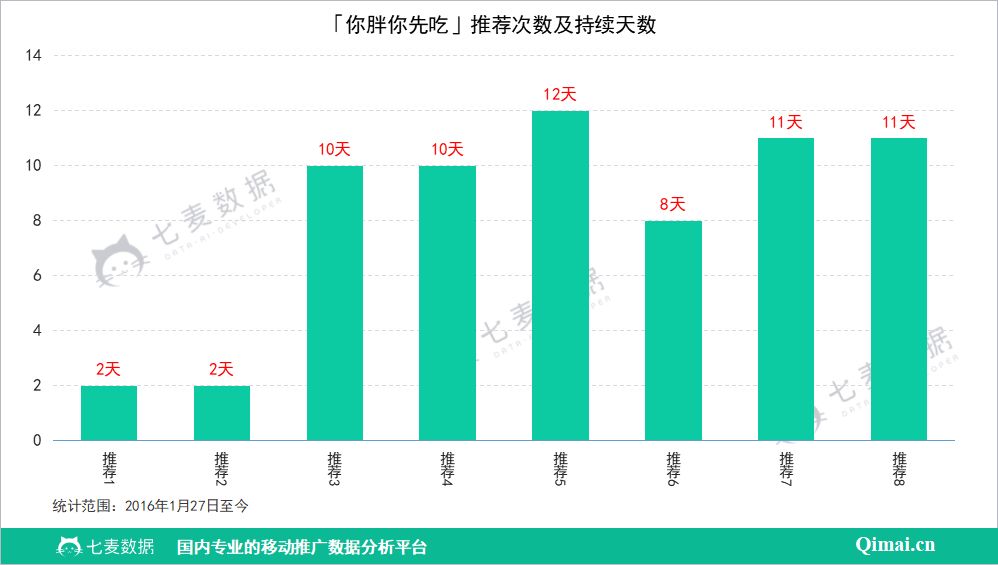 其实「你胖你先吃」这款游戏是深受苹果喜爱的,从 2016 年 1 月 27 日至今,它被苹果一共推荐了 8 次,单次推荐天数还都是比较高的。