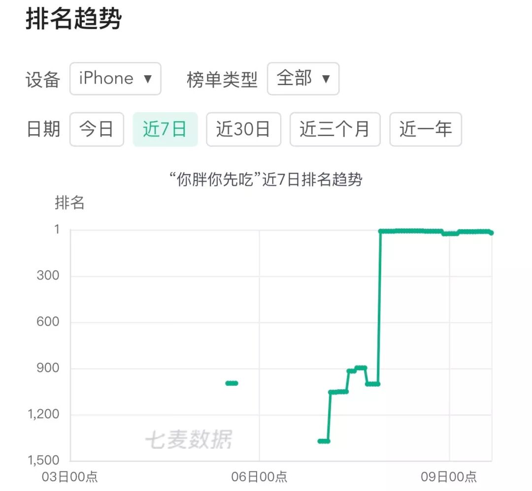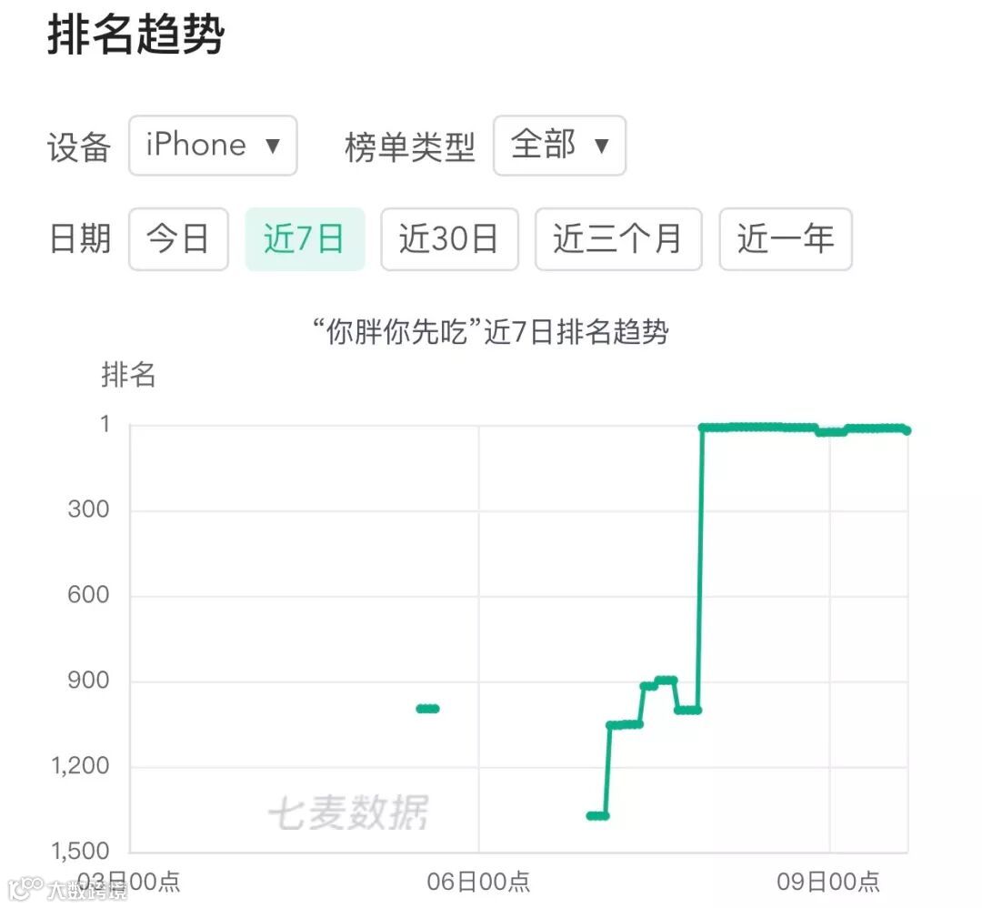 就在 7 月 8 日,「你胖你先吃」iOS 单日下载量已达 17w+ ,破历史新高,可谓是这次借抖音狠狠洗了一次粉。