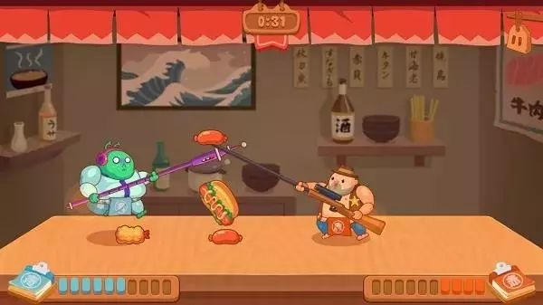 在游戏过程中,互相喂食的格斗模式也是其中的一大亮点,选择不同的人物形象,举着刀枪棍棒强迫好友吃下食物变成胖子,满满成就感。