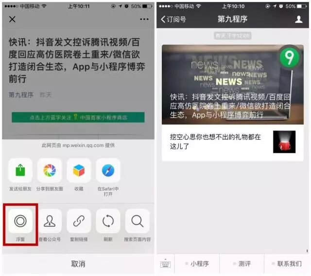 2. 微信新增文章缩小为浮窗功能
