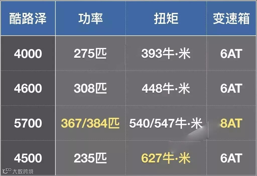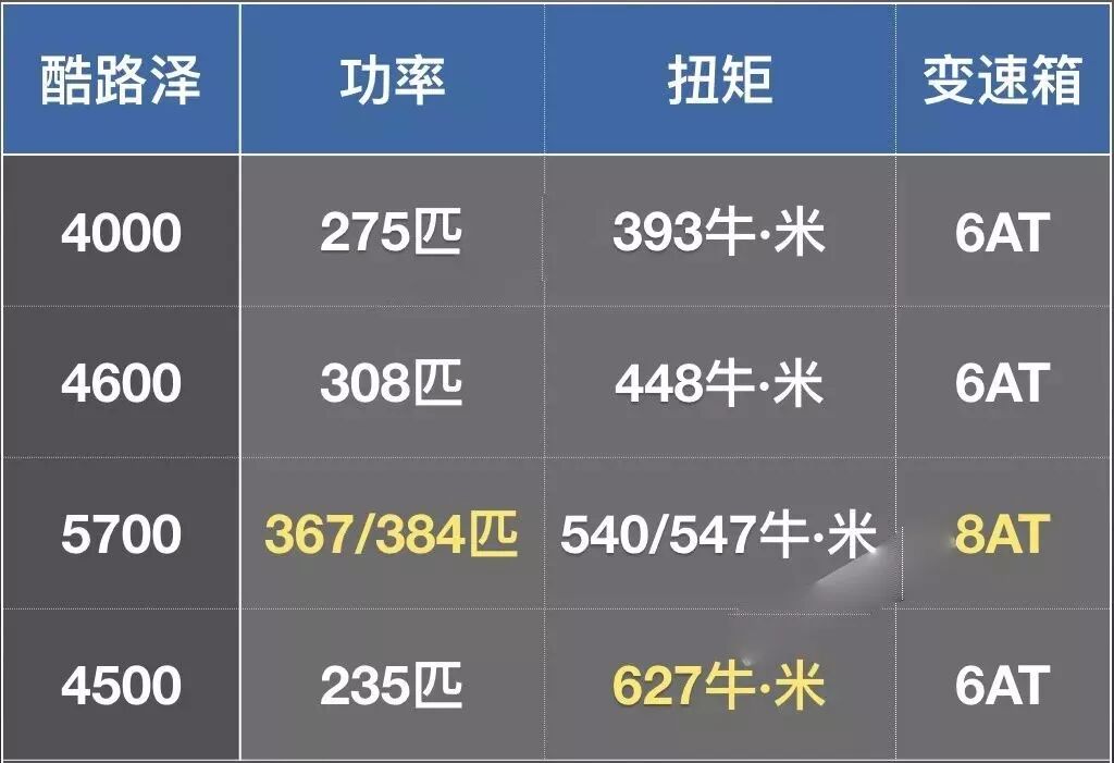 在这四个排量里头,5700的功率最高,而柴油版4500的扭矩最大。