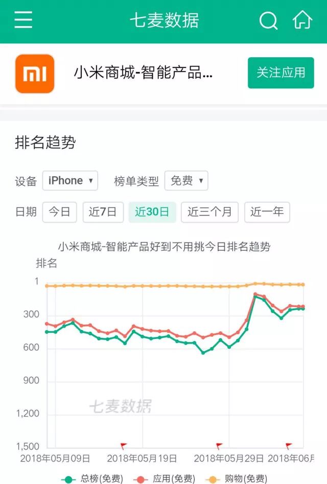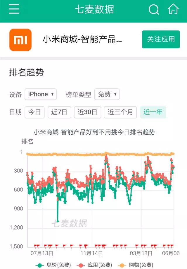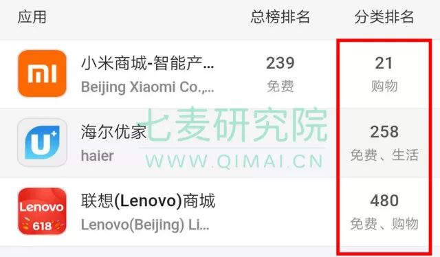根据七麦数据显示,小米商城推出后,反映还算不错。虽然小米商城在 App Store 购物榜单(免费)20 名上下游移,与主流购物平台还有部分差距,但对于生态链中的购物平台来说,成绩是斐然的。