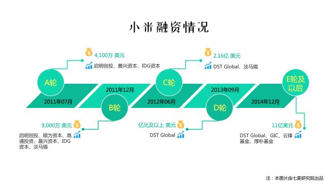吸金快,融资更快!小米在 4 时间内完成了 9 轮融资,虽然小米目前还没有上市,但据雷军说:“小米上市缺的不是钱,而是关于投资人和签有期权期待发家致富的员工等问题”。截止到 2017 年末,小米在全球收入超过 1000 亿人民币。