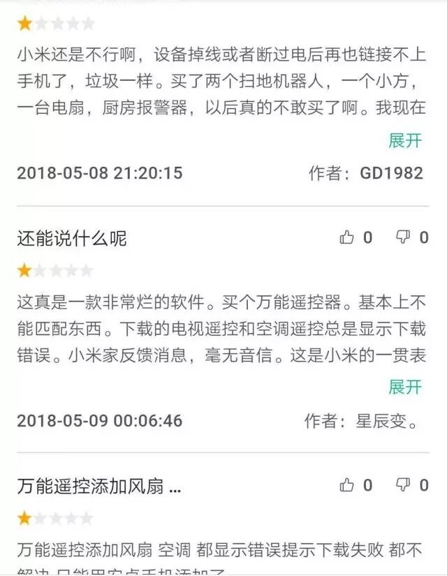 在用户评论方面,同样褒贬不一,好评用户觉得米家不仅好用,而且为国产 App 争光!但同样诸如服务和操控失灵的问题也有出现,看来小米在这些环节还是要进行优化。