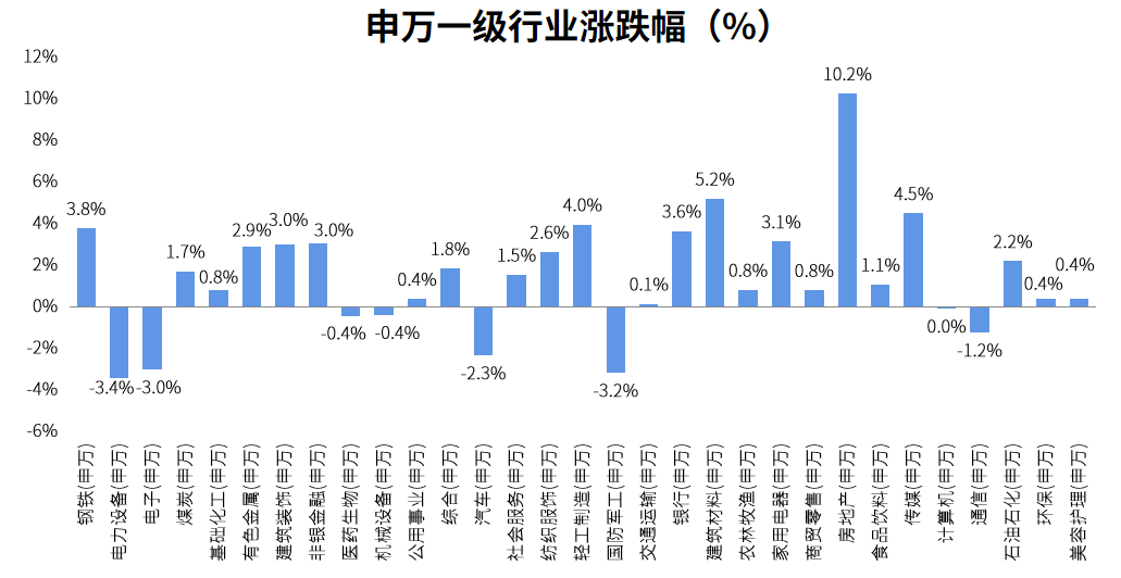 分行业来看,本周涨幅前三为: