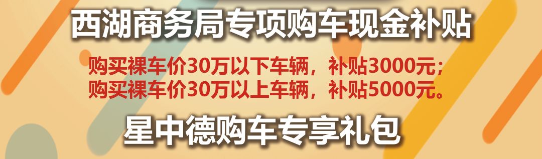 消费者在西湖区指定的汽车4S店购买车辆,政府给予个人消费者每人每车补贴如下: