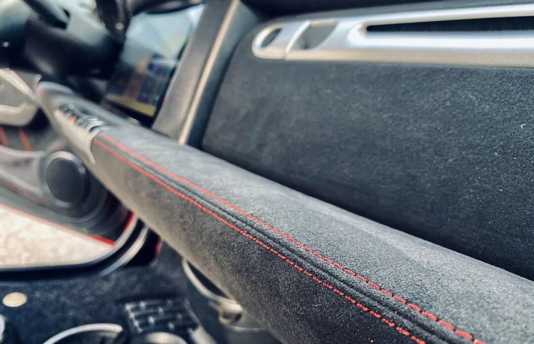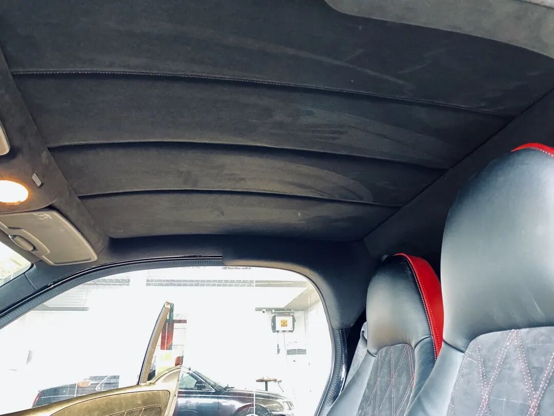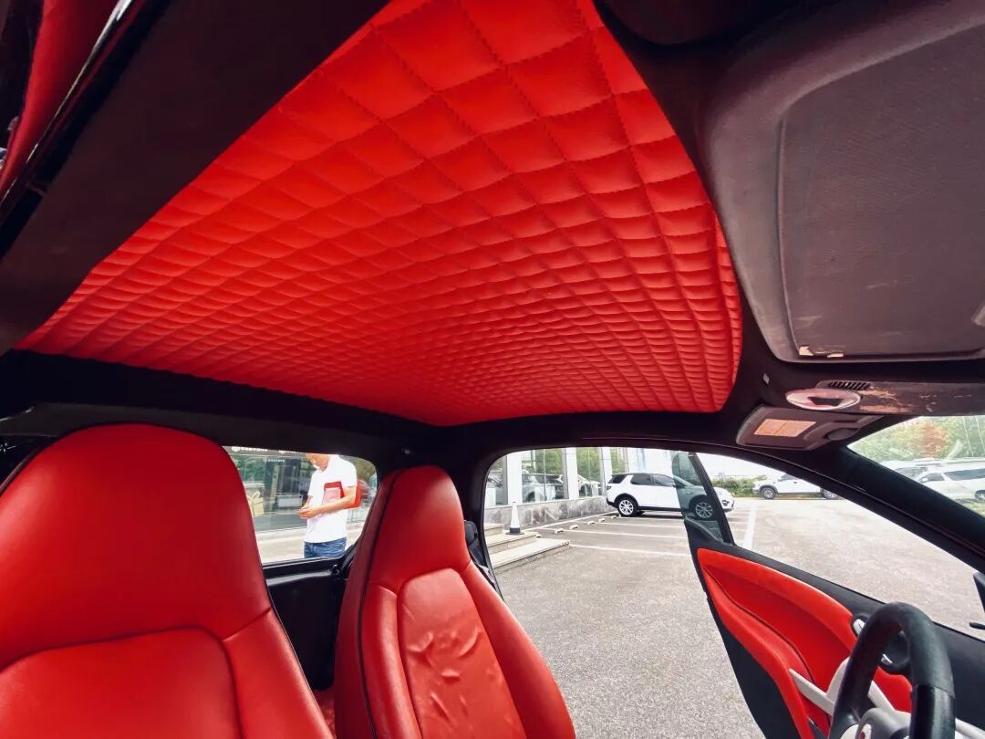 黑武士风格是这台红色小精灵内饰升级的主体,车顶由之前红色格状材质更换为酷黑色的Alcantara材质。