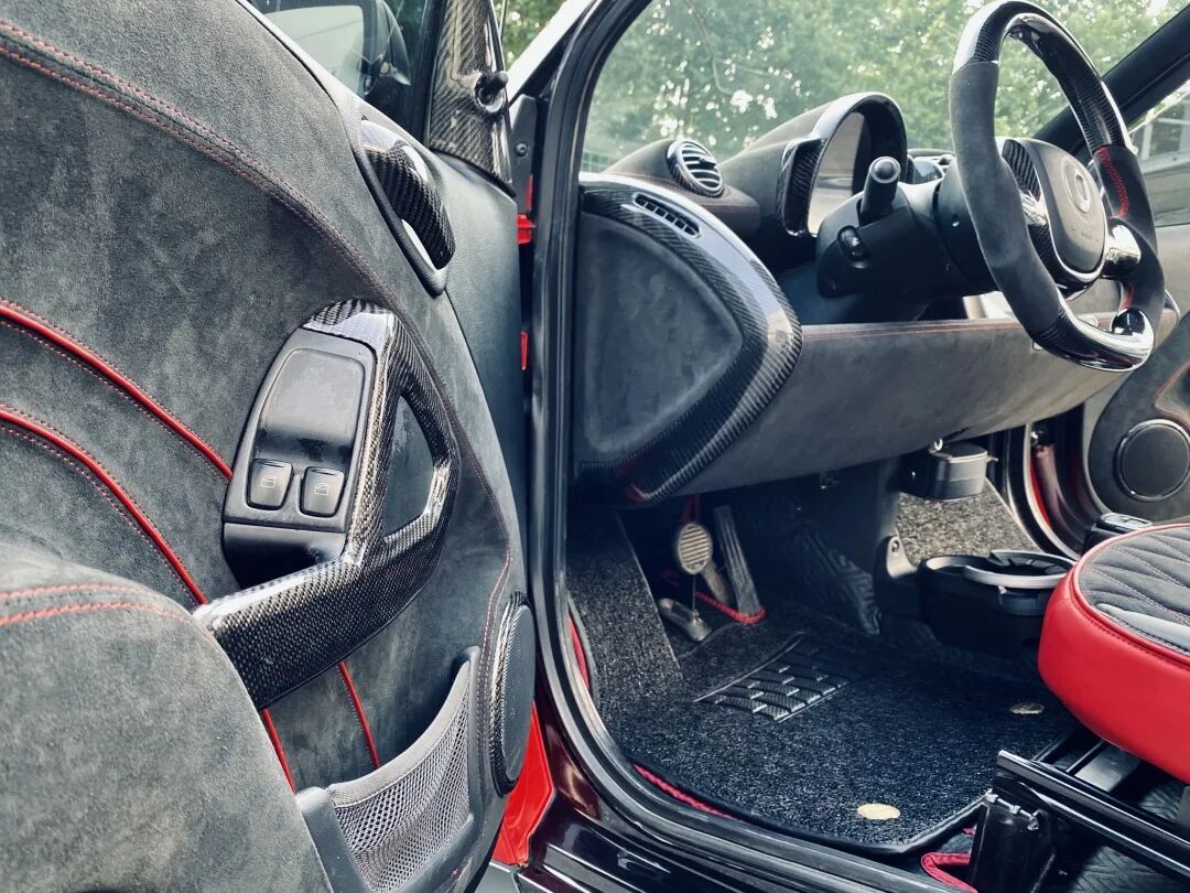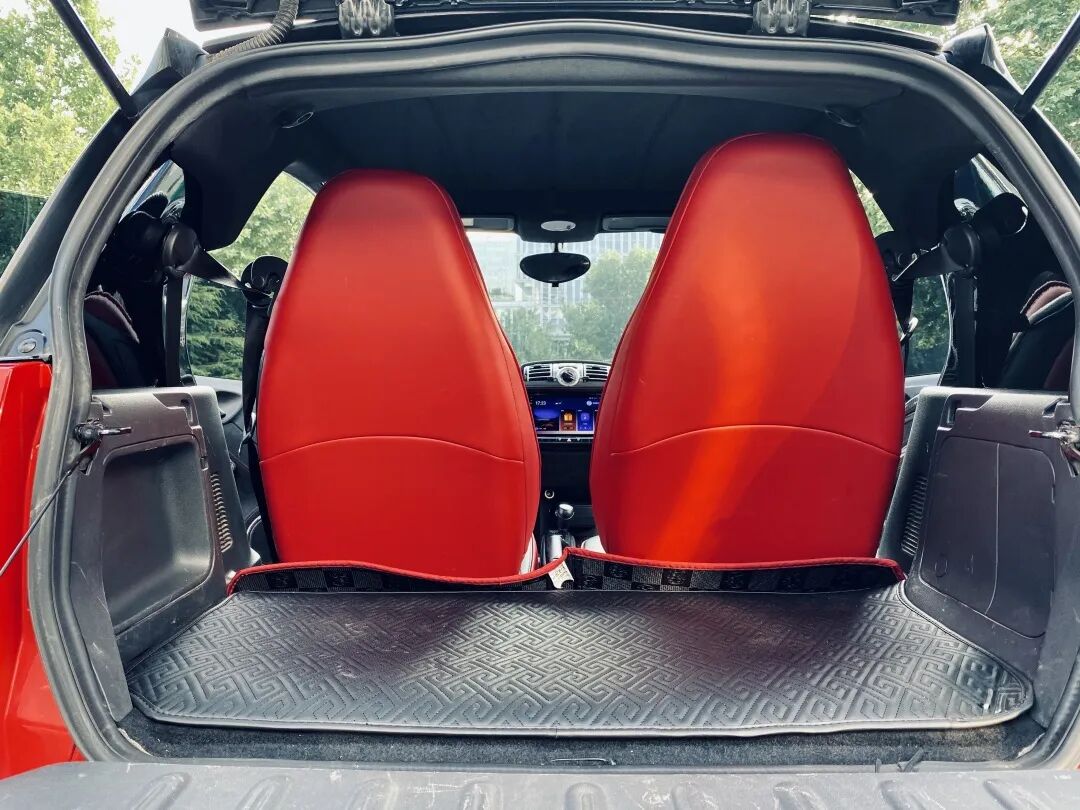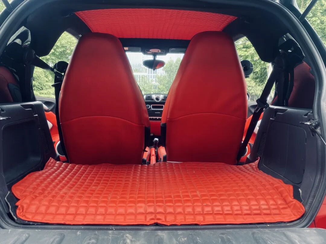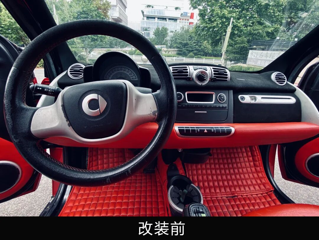 别看Smart后备箱小,但也是不能放过的~后备箱垫由之前的红色更换为黑色主色调,与整个改装风格前后呼应。
