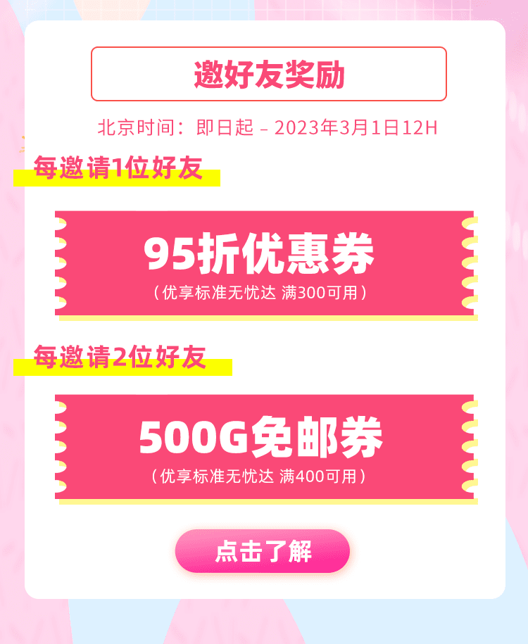 邀好友优惠券仅限2月内使用,优惠券不可转赠、叠加,如无特殊情况过期不作补发