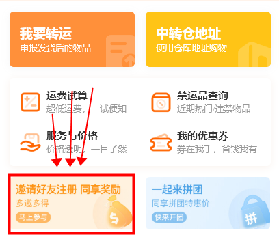 2、或打开小程序首页,如图示点击【邀请好友注册,同享奖励】
