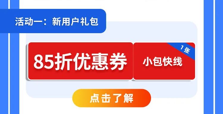 以上活动期间注册用户,注册后系统自动发放85折优惠券至账户,此券小包快线适用,优惠券领取后有效期30天