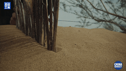 改变战局的关键,是一种看似简单却充满智慧的治沙“原型武器”草方格。草方格是将沙柳枝按相同的间隔插在沙丘上,形成的整齐方格。这个看似朴素的设计,却蕴藏着制服流沙的奥秘。