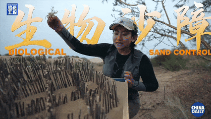 实验显示,草方格能增加沙漠表面的风阻,起到固沙的作用,还能形成沙窝,聚水锁沙。在中国治沙人的实践中,除了草方格,还衍生出了多种沙障。例如,生物沙障和复合性沙障等,实现了持续的固沙、改良土壤的作用。