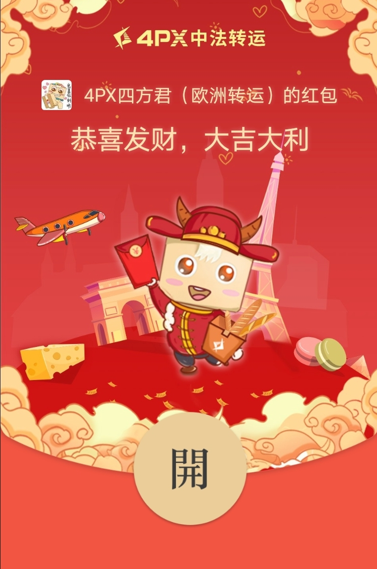 可领取4PX中法转运专属红包封面