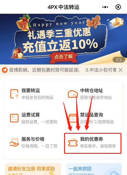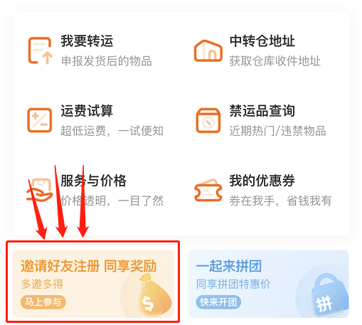 快喊你的小伙伴一起来寄年货啦!每邀一个小伙伴,即可得满250-30元的满减券一张,空运快线、中法小包都能用!